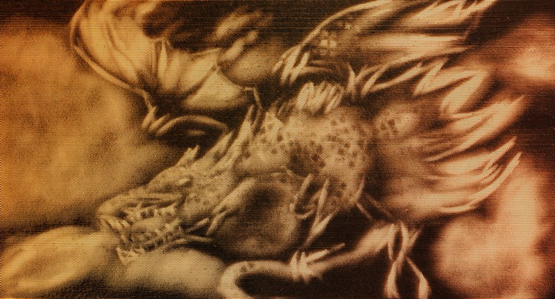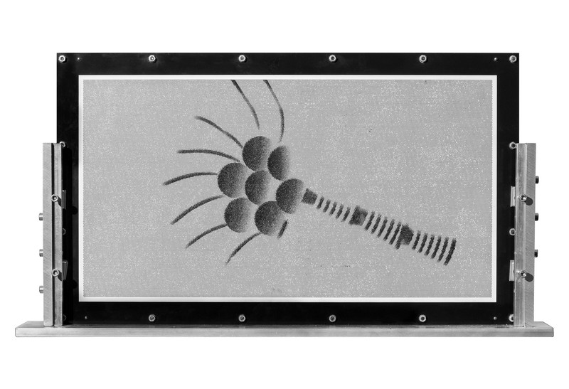 Portrait de l’écran d’épingle de 103320 épingles (modèle Spinae) Spinae dans son socle Spinae de profil Nuance de gris profil d’épingles blanc noir rouleau pour épingles emptreinte dessin coté opposé densité ombres dragon en nuance de gris