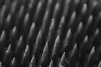 Double-pointed pins with a diameter of 0.4mm spaced 0.8mm apart.